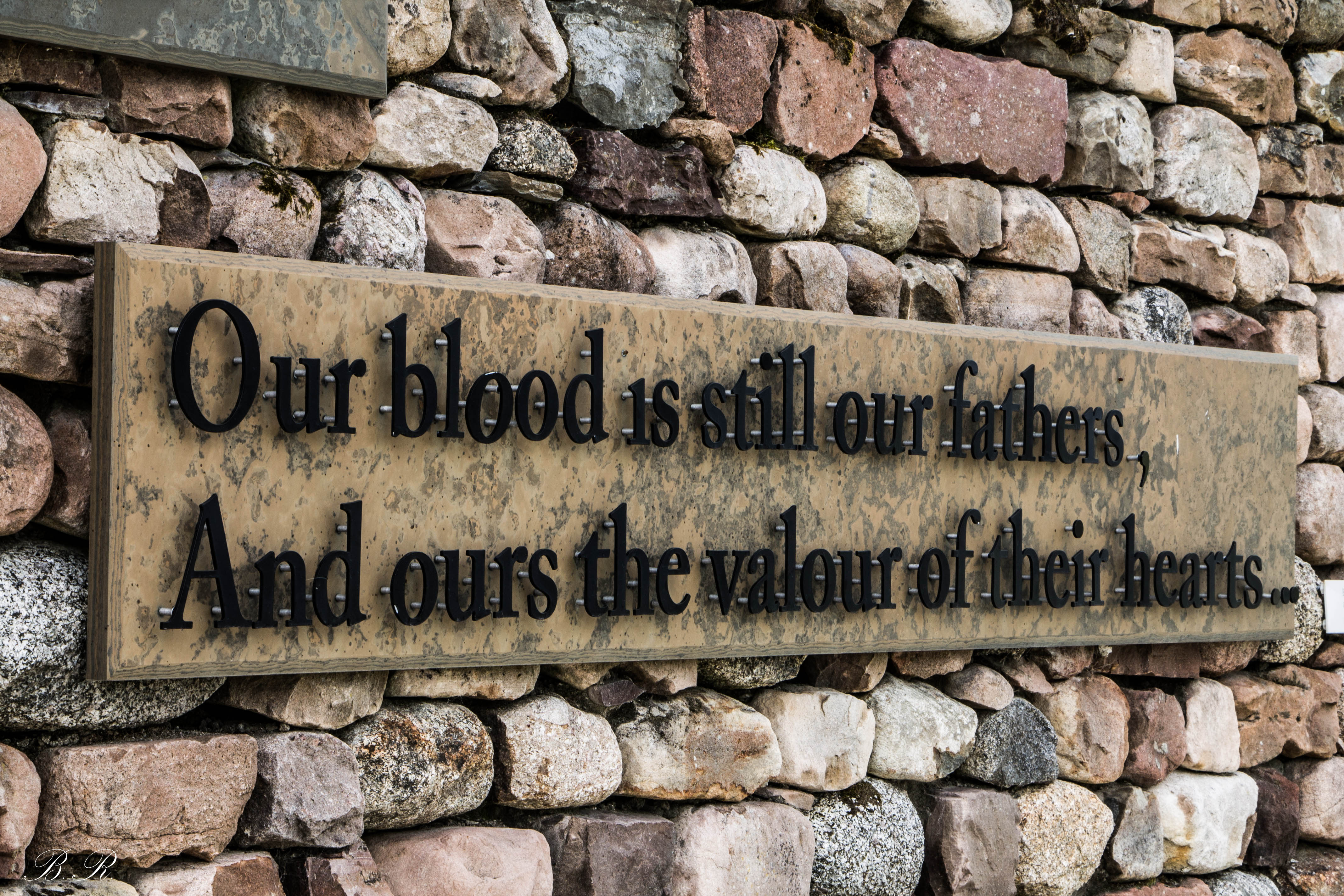 Visitare il campo di battaglia è stato molto emozionante, sebbene molto triste. La giornata grigia e ventosa ha reso tutto ancora più cupo, trasmettendomi un senso di solitudine e malinconia. Mentre camminavo, le folate di vento molto forti e la pioggia sferzante mi hanno fatto pensare a come dev’essere stata quella mattina, a come si erano sentiti quegli uomini fermi ai loro posti, stanchi ed affamati, che non aspettavano altro che l’ordine di attaccare gli avversari. Si prova una profonda amarezza per tutte quelle vite spezzate in poco meno di un’ora, in un battaglia che ancora prima di iniziare lasciava intravedere il suo esito disastroso. Cammino lungo il sentiero fiancheggiato dai massi che ricordano i Clan scozzesi fedeli alla causa giacobita; qualcuno ha lasciato un fiore, un fiocco in tartan, un ciondolo a forma di croce per onorare il loro sacrificio che, a distanza di quasi tre secoli, non è stato dimenticato dall’orgoglioso e fiero popolo scozzese.