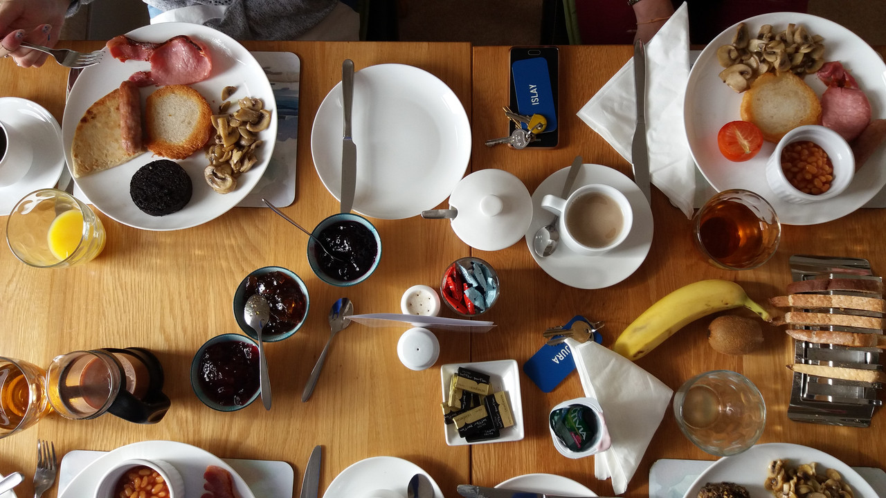 Sedersi al tavolo di un b&b e gustare una full scottish breakfast è un’esperienza…indimenticabile! Non è una colazione, è un pasto intero: uova preparate in vari modi, salsicce, fagioli, pomodori, focaccine di patate, bacon croccante, fette di pane tostate, marmellate fatte in casa, burro, funghi, spremute, frutta, caffè o té o cioccolata, cereali, e naturalmente l’haggis (e qui ci vuole coraggio, sono interiora di pecora, ma almeno una volta va provato!). La foto non è stupenda, ma mi ricorda una delle migliori colazioni, gustata nel miglior b&b del mio viaggio, ad Inveraray, un posto magico!