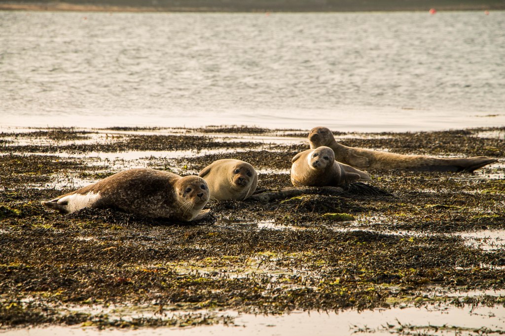 Passando agli animali che vivono nell’acqua, come non citare le simpaticissime e goffe foche? Le foche comuni (harbour seals) vivono lungo le coste scozzesi e si possono avvistare anche in prossimità dei porti, dove si avvicinano per cercare di rubare qualche pesce dai pescherecci che scaricano il loro bottino ittico: si stima che ci siano circa 10.000 foche in Europa, di cui il 30% nelle acque del Regno Unito e, di queste l’80% sono in Scozia! La foca grigia (grey seal) invece è una specie molto rara e in tutto il mondo se ne contano solo 400.000 esemplari di cui il 40% vive nel Regno Unito, la maggior parte dei quali in Scozia. Entrambe le specie di foche sono molto longeve, possono vivere infatti 20-30 anni! Le foche comuni hanno un muso molto somigliante a quello di un cane, sono lunghe circa un metro e mezzo e possono pesare tra gli 80 e i 100kg; le foche grigie sono molto più grandi, pesano tra i 200 e i 300kg e raggiungono i 2mt di lunghezza. Potrete avvistare le foche lungo le coste scozzesi, soprattutto quella occidentale e al nord e sulle isole, ma anche sulla costa orientale: le vedrete nuotare tranquillamente in mare, nelle baie più sileziose, oppure crogiolarsi sulla sabbia facendo un gran chiasso! Dove avvistare le foche: alcuni dei luoghi migliori dove avvistare le foche sono l’Isola di May, il Cromarty Firh, il Moray Firth, il Firth of Tay, le isole Orcadi e le Ebridi Esterne e le Ebridi Interne.