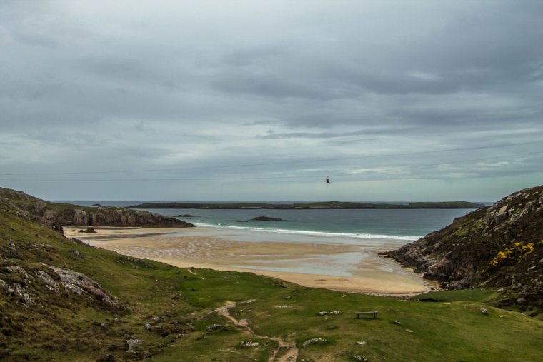 Tra tutte le spiagge della zona quello che rende Ceannabeinne così speciale è il fatto di poterla vedere dall’alto….volando! Ma come, direte voi? Eh si, sulle colline rocciose che contornano la spiaggia si trova la Golden Eagle Zipline che permette di godersi una meravigliosa vista dall’alto, a 37 metri da terra! Non è necessario prenotare, basta presentarsi sul posto e attendere il proprio turno. La spiaggia, racchiusa in due promontori rocciosi, quando c’è la bassa marea diventa lunghissima e, con il sole, si tinge di un particolare colore rosato!