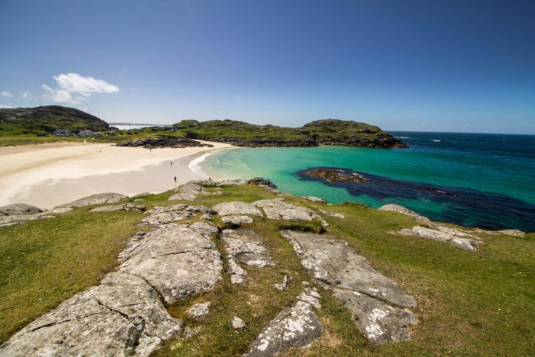 Partendo dal villaggio di Lochinver una tortuosa single track road conduce in questa spiaggia dall’aspetto paradisiaco: se avete la fortuna, come me, di capitarci in una giornata di sole, i colori così vividi e brillanti vi lasceranno a bocca aperta! Una spiaggia dall’aspetto vagamente caraibico, grazie alla sua sabbia bianchissima e al mare così azzurro, ma immersa in un ambiente tipicamente scottish, con scogli, rocce e erbetta verde! Designata del titolo “bandiera blu”, Achmelvich è molto popolare tra surfisti, canoisti e famiglie: è il luogo ideale dove rilassarsi giocando sulla spiaggia e facendo un bel bagno (con la muta!). Consigliatissimo salire sulle alture attorno alla spiaggia per magnifiche foto dall’alto!