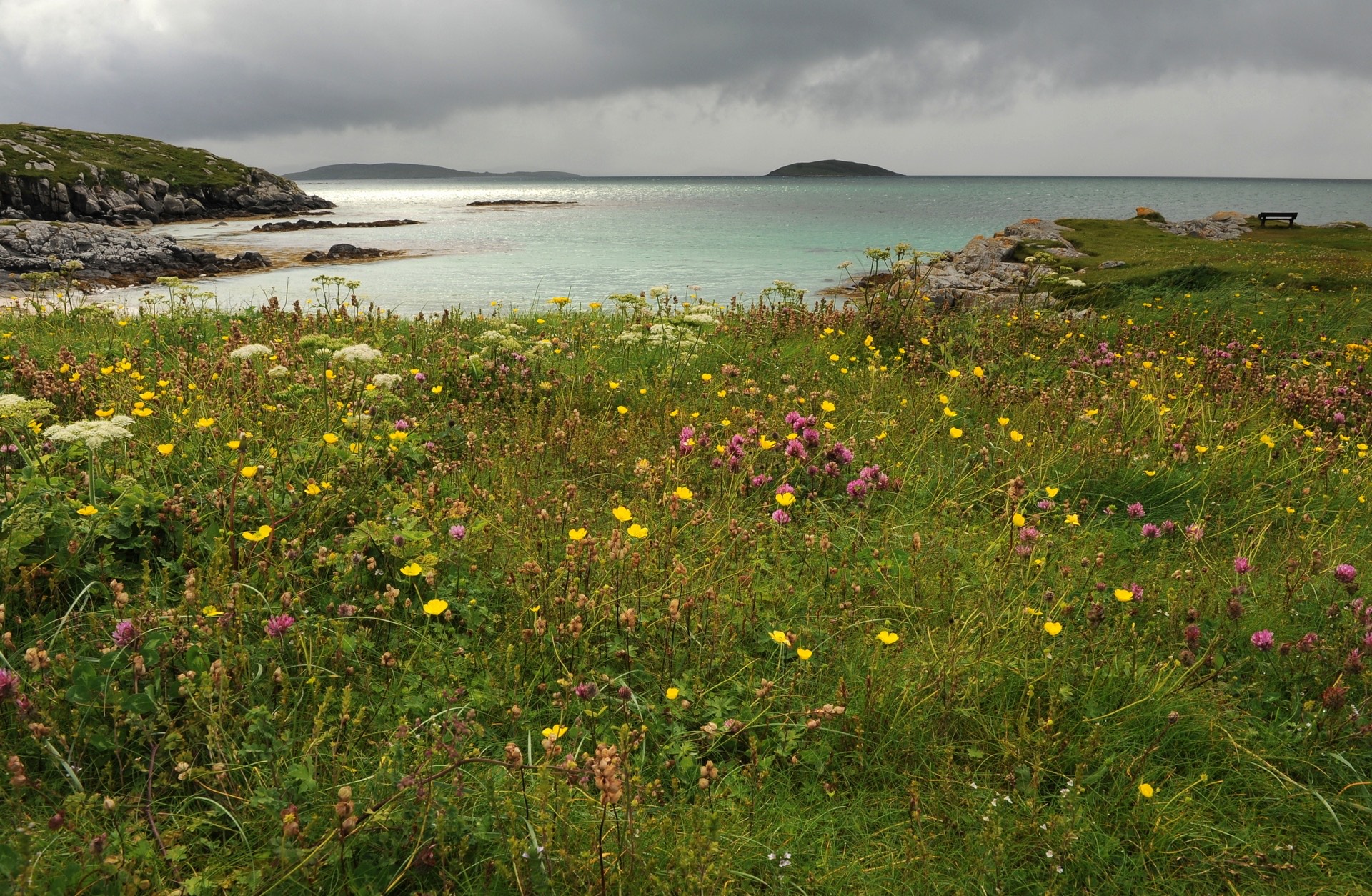 Le spiagge del nord ovest scozzese, e più in particolare quelle delle Ebridi Esterne, hanno una caratteristica unica, la presenza del machair (termine Gaelico che si pronuncia più o meno “màcher”), una fertile pianura erbosa che si trova alle spalle delle distese di sabbia, comprendente anche eventuali complessi di dune. All’interno del machair si trovano numerose specie di fiori, tra cui una gran varietà di orchidee. Pensate che in nessun altro posto del mondo si trova questo habitat così particolare, solo in Scozia e in Irlanda occidentale!