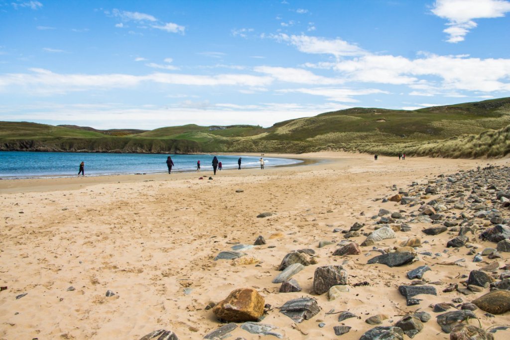 Una lunghissima spiaggia di sabbia dorata che si trova tra Thurso e John o’Groats, alla base della penisola di Dunnet. La spiaggia si estende pier più di 3km ed ha alle spalle delle bellissime dune di sabbia che fanno venire voglia di arrampicarsi e inoltrarsi sui numerosi sentieri, immersi nella vegetazione, che le solcano. E’ una destinazione popolare tra i surfisti, specilamente quando il vento, e le onde, sono forti! Il Seadrift Visitor Centre, che si trova accanto al parcheggio e al settentrionale della spiaggia, offre una mostra sulla storia naturale della zona.