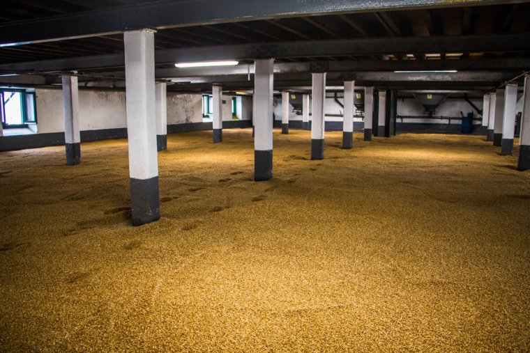 Prima di venir affumicato con la torba l’orzo viene fatto germinare lasciandolo in ammollo in acqua per alcuni giorni e facendolo successivamente asciugare spargendolo sul pavimento di apposite stanze dette malting rooms dove viene girato e rigirato fino ad asciugatura. Alcune distillerie come la Laphroaig compiono in parte in autonomia questo processo (e durante il tour viene mostrato ai visitatori il malting floor) mentre altre acquistano l’orzo già germogliato, ossia il malto. Il malto utilizzato su Islay viene prodotto sull’isola, alla Port Ellen Maltings (la Port Ellen era anch’essa una vecchia distilleria di whisky): l’orzo proveniente dall’Inghilterra viene trasportato a Port Ellen via nave e trasformato in malto per poi essere distribuito nelle varie distillerie.