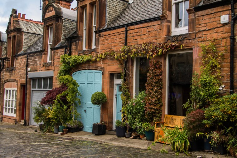 Rimanendo nel Dean Village ecco un’altra via sconosciuta: Belford Mews è lunga solo 200 metri ma è ricca di fascino e di un’atmosfera che sa di passato! La pavimentazione acciottolata, i bassi edifici di mattoni rossi, piante fiori e cespugli, porte colorate e dettagli curati e particolari la rendono davvero pittoresca. La zona è così silenziosa ed appartata che i residenti non hanno neppure le tende alle finestre infatti mentre passeggiavo fotografando gli scorci che più mi colpivano mi sentivo quasi un’impicciona che si mette a curiosare all’interno delle abitazioni altrui! In passato questi edifici erano utlilizzati come garage ed ecco spiegata la presenza di moltissimi portoni, molti dei quali murati o trasformati in ariose finestre.