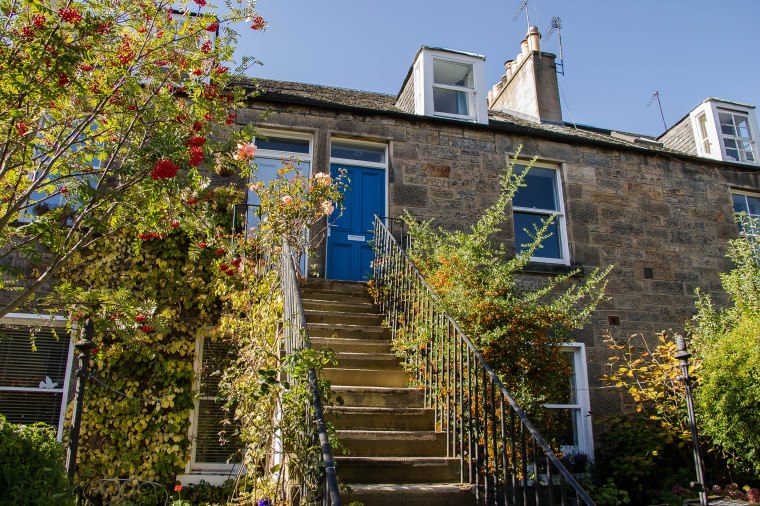 Glenogle Road, a pochi minuti a piedi dal Giardino Botanico di Edimburgo, è davvero una via particolare: in realtà Glenogle Road è soltanto la lunga via principale dalla quale si sviluppano 12 viuzze parallele tra loro, lunghe poco più di un centinaio di metri, che terminano tutte a pochi passi dalle sponde del Water of Leith. Queste vie vengono chiamate “The Colonies of Stockbridge” e furono costruite per fornire alloggi a basso costo per la classe artigiana. Lunghe case a schiera di pietra contornano le strette stradine parallele, alla maggior parte delle quali si accede tramite una ripida scalinata che conduce al primo piano. Se in Ann Street regnava l’ordine qui invece i piccoli giardini sono selvaggi e disordinati, lasciati forse un pò a sè stessi, ma fiori e cespugli creano un bellissimo tocco di verde e di natura rigogliosa all’interno della città!
