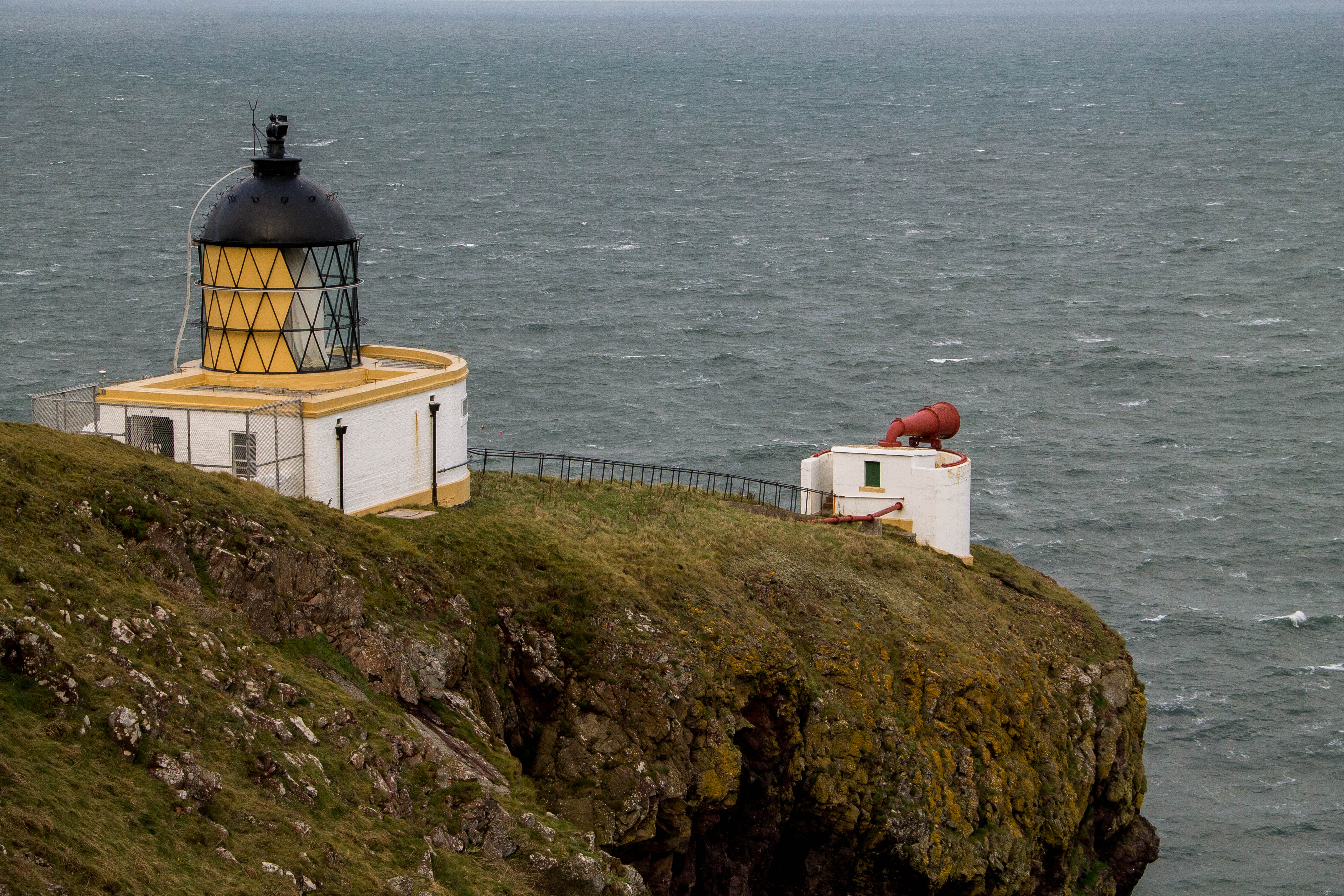 Il faro di St.Abbs Head, negli Scottish Borders e situato nell’omonima Riserva Naturale ed accanto all’omonimo villaggio, si distingue dagli altri fari scozzesi per le sue dimensioni ridotte: niente torri altissime infatti, ma sono una piccola e tozza torretta, ma che porta i colori simbolo dei fari degli Stevenson, bianco, giallo e nero. Il faro fu progettato e costruito da Thomas e David Stevenson nel 1862 a seguito dell’affondamento di una nave, la “Martello”, avvenuto nel 1857. Caratteristica unica di questo faro è la presenza di un “Siren Fog Signal”, quell’altoparlante rosso che vedete in foto qui sotto, una vera e propria sirena che in caso di nebbia segnalava la vicinanza delle scogliere. Fu il primo dispositivo del genere in Scozia, costruito nel 1876. I cottage del guardiano sono oggi dei bellisismi appartamenti estivi!