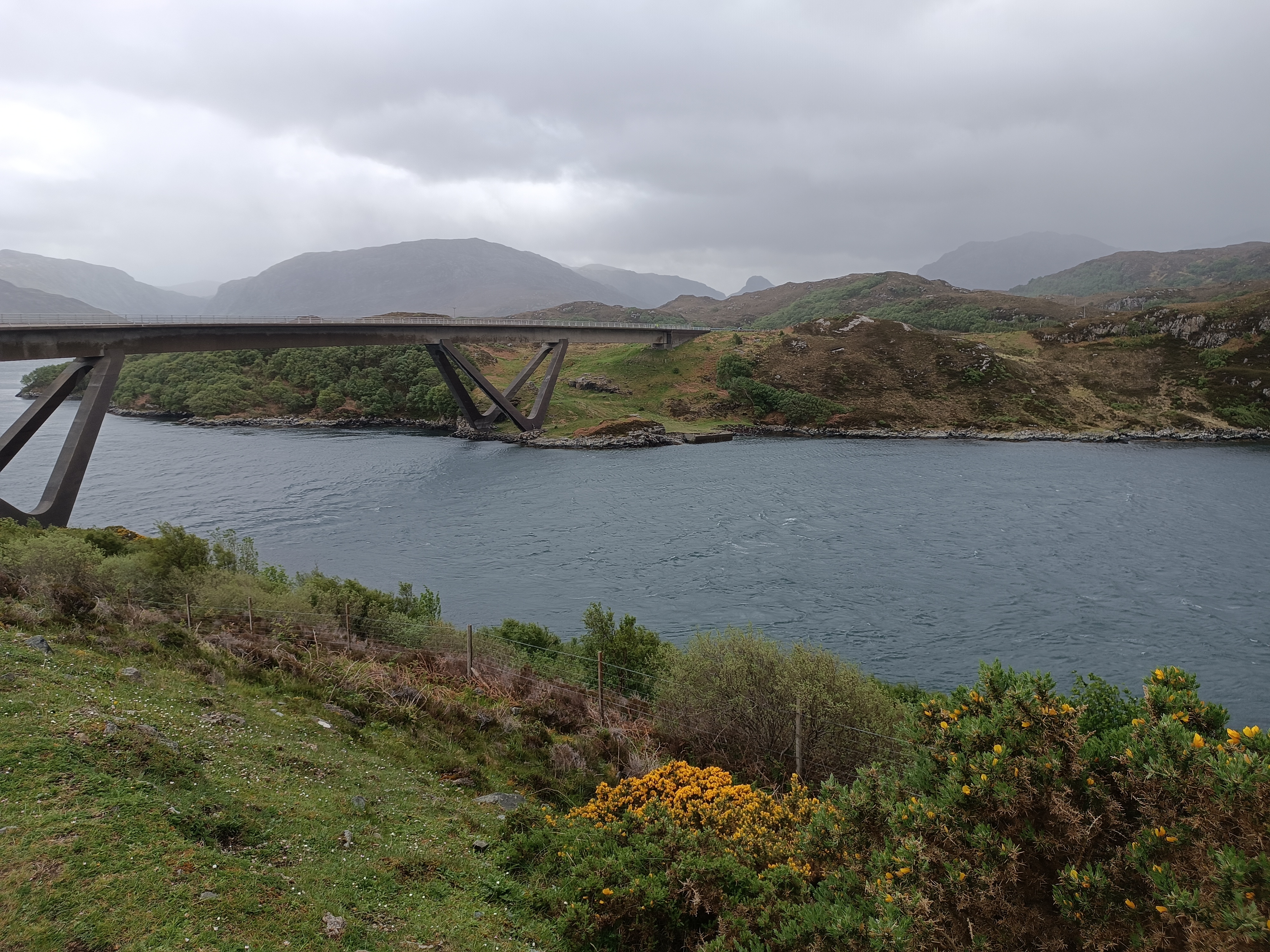 Proseguendo verso Sud e si guida attraverso un paesaggio che sembra quasi lunare, una vasta brughiera costellata di laghi, laghetti e fiumiciattoli. Se viaggiate tra maggio e fine luglio uno stop interessante potrebbe essere il villaggio di Tarbet, da dove parte il gommone per l’Isola di Handa, ottimo spot dove osservare i puffins. Si raggiunge quindi il villaggio di Scourie con la sua piccola spiaggia: vi suggerisco di parcheggiare l’auto nei pressi del cimitero e di passeggiare sul promontorio roccioso che sovrasta la spiaggia, un luogo isolato e molto tranquillo, frequentato dalle simpatiche pecorelle locali. Prossimo stop suggerito lo scenografico Kylesku Bridge, costruito tra il 1982 e il 1984 con una particolare curvatura unica nel suo genere.