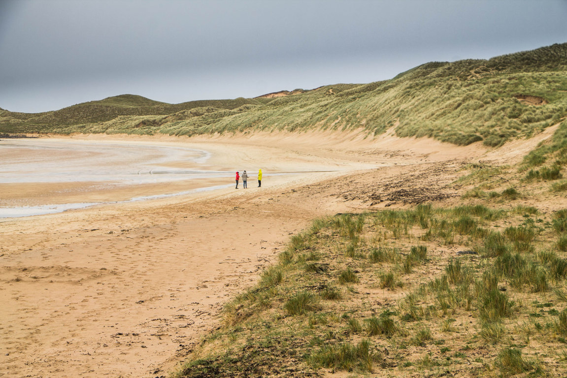 Subito a sud di Durness iniziano a spuntare, lungo la costa, le prime spiagge! La prima e più remota da raggiungere è Sandwood Bay, due ore a piedi all’andata e due ore a piedi al ritorno, una bella “passeggiata” su un sentiero piuttosto dissestato, con un lieve saliscendi, che attraversa paesaggi verdi e desolati e dove si verrà premiati con la vista di una delle più belle e remote spiagge scozzesi, con la sabbia dorata contornata da dune e scogliere. Altra spiaggia più facile da raggiungere ma ugualmente splendida è quella di Oldshoremore, circondata da un affascinante complesso di dune ricoperte di vegetazione. La spiaggia, conosciuta in gaelico come “Am Mellan”, si raggiunge con una breve passeggiata di circa 5 minuti partendo dal comodo parcheggio dotato pure di toilette pubbliche, e costeggiando un cimietero.