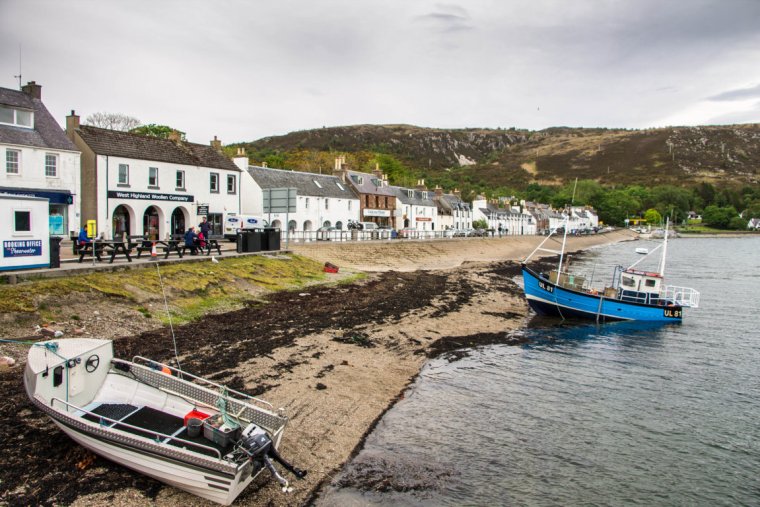 Ad Ullapool sembra di essere tornati un pò alla civiltà: negozi, ristoranti, supermercati, alloggi di ogni tipo, cafè, librerie. Dopo tanti piccoli villaggi Ullapool sembra davvero una metropoli! Un insediamento qui, sulle sponde del Loch Broom, era presente già in epoca vichinga ma la cittadina odierna fu fondata nel 1788 per il grande boom della pesca alle aringhe. La società Britannica della pesca (British Fisheries Society) incaricò Thomas Telford, lo stesso che progettò la New Town di Edimburgo, di progettare una nuova cittadina e un porto. Così nacque Ullapool: alcuni edifici attorno al porto sono ancora originali del 1788!