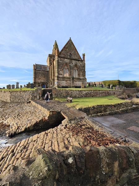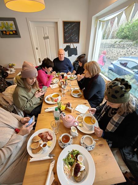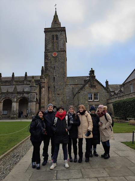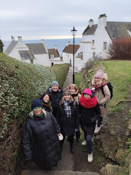 Il nostro viaggio è iniziato attraversando il Firth of Forth e facendo una sosta a North Queensferry per ammirare il faro funzionante più piccolo di Scozia e la vista sul famigerato Forth Bridge, ponte rosso costruito nel 1890 ed oggi patrimonio dell’Unesco. Viaggiando fuori stagione ci siamo goduti tutti per noi questi luoghi solitamente affollati di turisti, apprezzandone molto la tranquillità ed il silenzio. La seconda tappa è stato il porto di Dysart, risalente al 1450 quando il villaggio aveva un prospero commercio di sale e carbone con Olanda e Belgio. Il porto è stato utilizzato come location della famosa serie tv Outlander, apparendo come il porto Francese de La Havre. Per pranzo abbiamo fatto una sosta al Village Cafè di Ceres, una deliziosa tearoom gestita da alcuni volontari della comunità locale, che è stata il locale preferito dell’intero viaggio da tutto il gruppo. Nel pomeriggio abbiamo raggiunto Saint Andrews e il nostro alloggio, la Annandale Guesthouse, un b&b a conduzione familiare in posizione ideale per raggiungere sia il centro che la spiaggia e i campi da golf. Dopo una visita guidata alla cittadina di Saint Andrews, con la sua università e la sua cattedrale, abbiamo cenato presso Forgan’s, anche questo acclamato a gran voce come il ristorante migliore di tutto il viaggio.