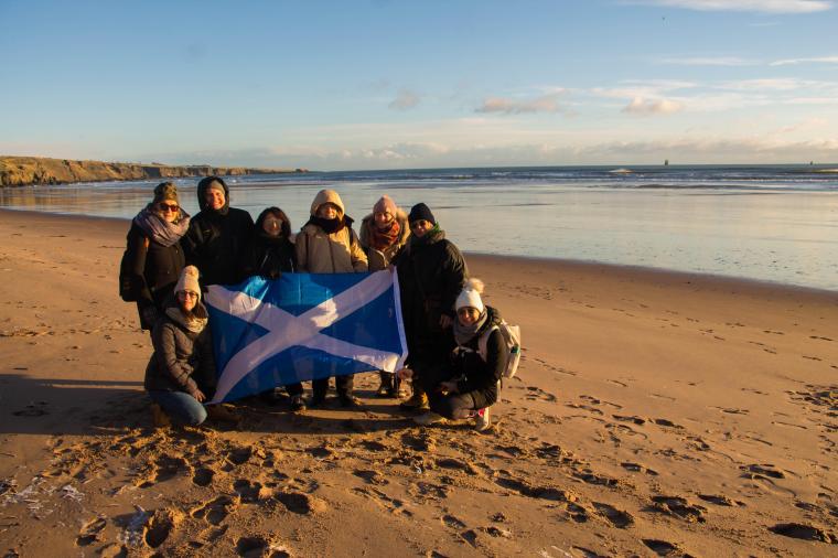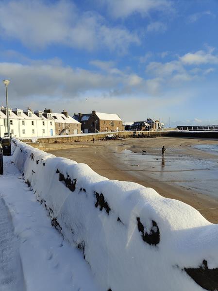 L’ultimo giorno del nostro viaggio l’abbiamo dedicato ad una gita fuori porta verso nord: abbiamo attraversato le regioni dell’Angus e dell’Aberdeenshire per ammirare il castello a mio avviso più bello di Scozia, Dunnottar Castle. Lasciata Saint Andrews di buon’ora abbiamo raggiunto la nostra prima fermata, ossia Lunan Bay: abbiamo ammirato l’alba in viaggio e, arrivati su questa bellissima baia siamo stati accolti da una luce strepitosa, dorata e avvolgente. La marea era bassissima, le onde lontane e ruggenti, il bagnasciuga sembrava uno specchio e le dune di sabbia erano completamente ghiacciate! Abbiamo quindi proseguito verso nord fino a raggiungere Stonehaven: con nostra grandissima gioia abbiamo trovato la neve, un mantello soffice e bianco che avvolgeva tutto. E’ stato un momento davvero emozionante e, per me, un sogno che si è avverato! Tempo di fare una passeggiata al porto, gustando un delizioso croissant presso l’Old Pier Coffee House e via verso l’attrazione principale della giornata: Dunnottar Castle ci ha accolti nella neve, offrendoci uno spettacolo che nessuno di noi dimenticherà mai. Durante la nostra breve permanenza siamo passati dal sole splendente alla bufera di neve e poi di nuovo al sole, tutto in perfetto stile scozzese. Lasciato Dunnottar ci siamo avviati verso il cafè scelto per la pausa pranzo ossia l’Edzell Tweedie, cafè con annesso negozio di souvenirs. Nel pomeriggio abbiamo fatto ritorno a Saint Andrews, con una brevissima sosta ad Arbroath: volevamo visitare l’abbazia ma siamo arrivati due minuti dopo l’orario dell’ultimo ingresso quindi ahimè niente! Per cena abbiamo provato il pub Hams Hame, all’interno dell’Old Course Hotel. Il cibo era buono ma l’ambiente freddissimo e poco accogliente.