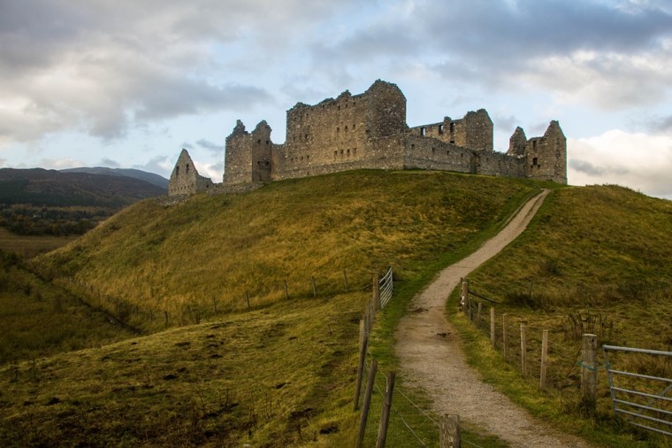 Mentre si percorre la A9 da Pitlochry ad Inverness, tra i villaggi di Newtonmore e Kincraig nel Cairngorms National Park, non dimenticatevi di osservare attentamente alla vostra destra: riuscirete a scorgere in lontananza le Ruthven Barracks, un complesso di caserme costruite agl inizi del 1700 su di una collinetta a guardia della zona. Non so come mai non le avevo mai visitate prima, non mi avevano mai attirato particolarmente, ed invece sono rimasta davvero stupita: gli edifici diroccati sorgono su di una collinetta verde, perennemente ventosa, e colpiscono subito per il contrasto di colori, il verde brillante dell’erba ed il verde brillante del cielo.