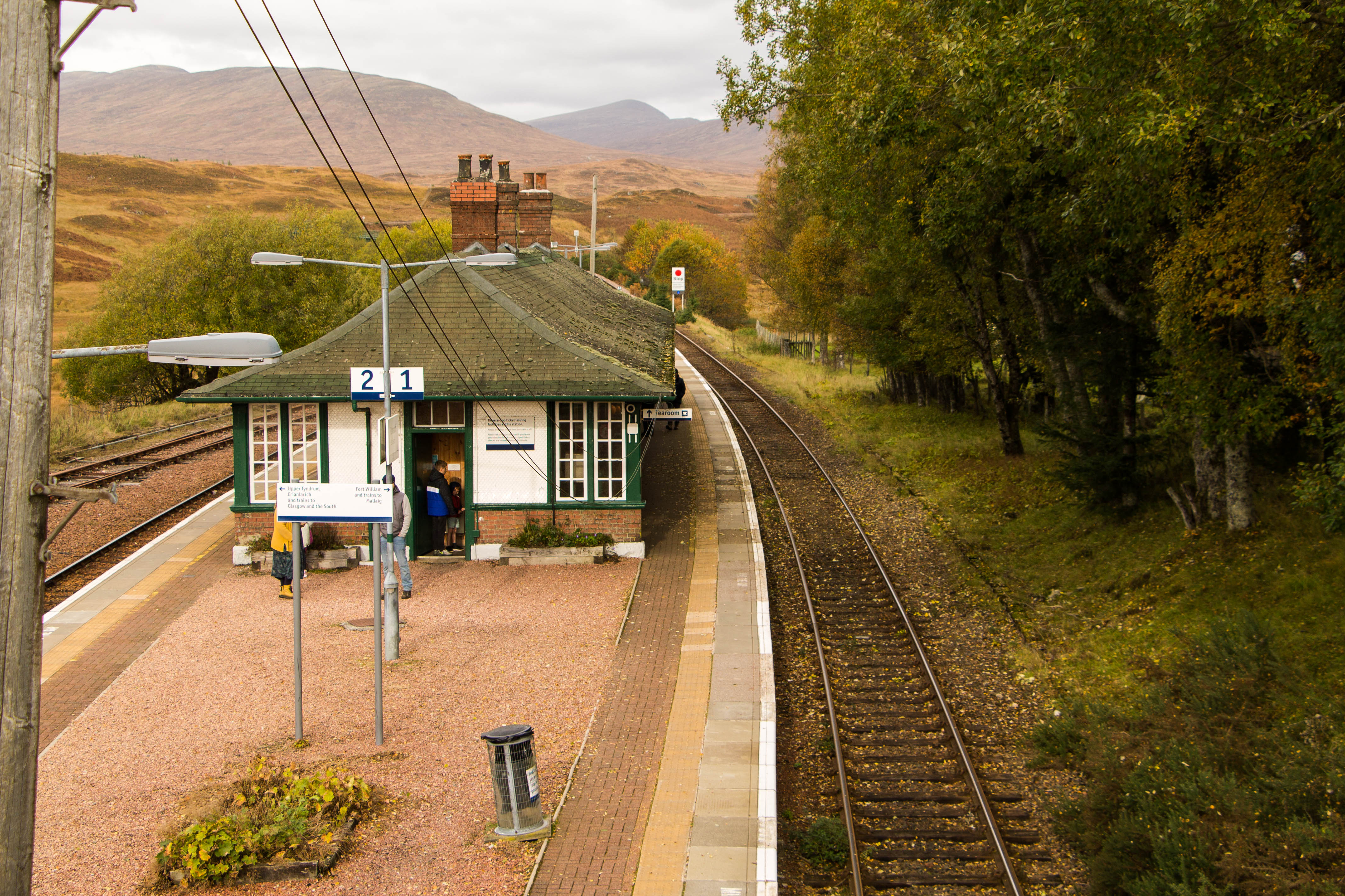 Bastano pochi passi dal parcheggio per raggiungere la protagonista indiscussa di questa zona: la Rannoch Station sembra quasi una visione, del resto perchè mai ci dovrebbe essere una stazione ferroviaria in un posto così remoto? Per arrivarci, in alternativa alla strada, occorrerebbe prendere il treno da Glasgow o da Fort William percorrendo la celebre e scenografica West Highland Railway. Una manciata di treni al giorno transitano per questa curatissima stazione, facendo scendere o salire i pochi visitatori che si fermano per esplrare la zona. Camminare sulla banchina, dopo averli sorpassati tramite il piccolo ponte pedonale, è davvero d’obbligo: qui,
