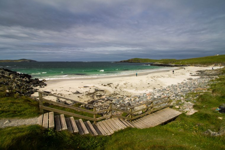 Nell’estremità meridionale dell’Isola di Burra, proprio in fondo alla strada, si trova quest’altra spiaggia raggiungibile con una breve passeggiata. La spiaggia è una lunga lingua di sabbia che conduce al Kettla Ness, un promontorio con scogliere a picco sul mare. Presso il parcheggio si trova il laboratorio e negozio Wild About Art, dove troverete esposte le opere di Anne Barron, che vive proprio nella casetta accanto! Poco prima del parcheggio si trova invece la Easthouse, un cottage restaurato che ospita un piccolo museo fotografico, solitamente aperto la domenica pomeriggio nei mesi estivi.