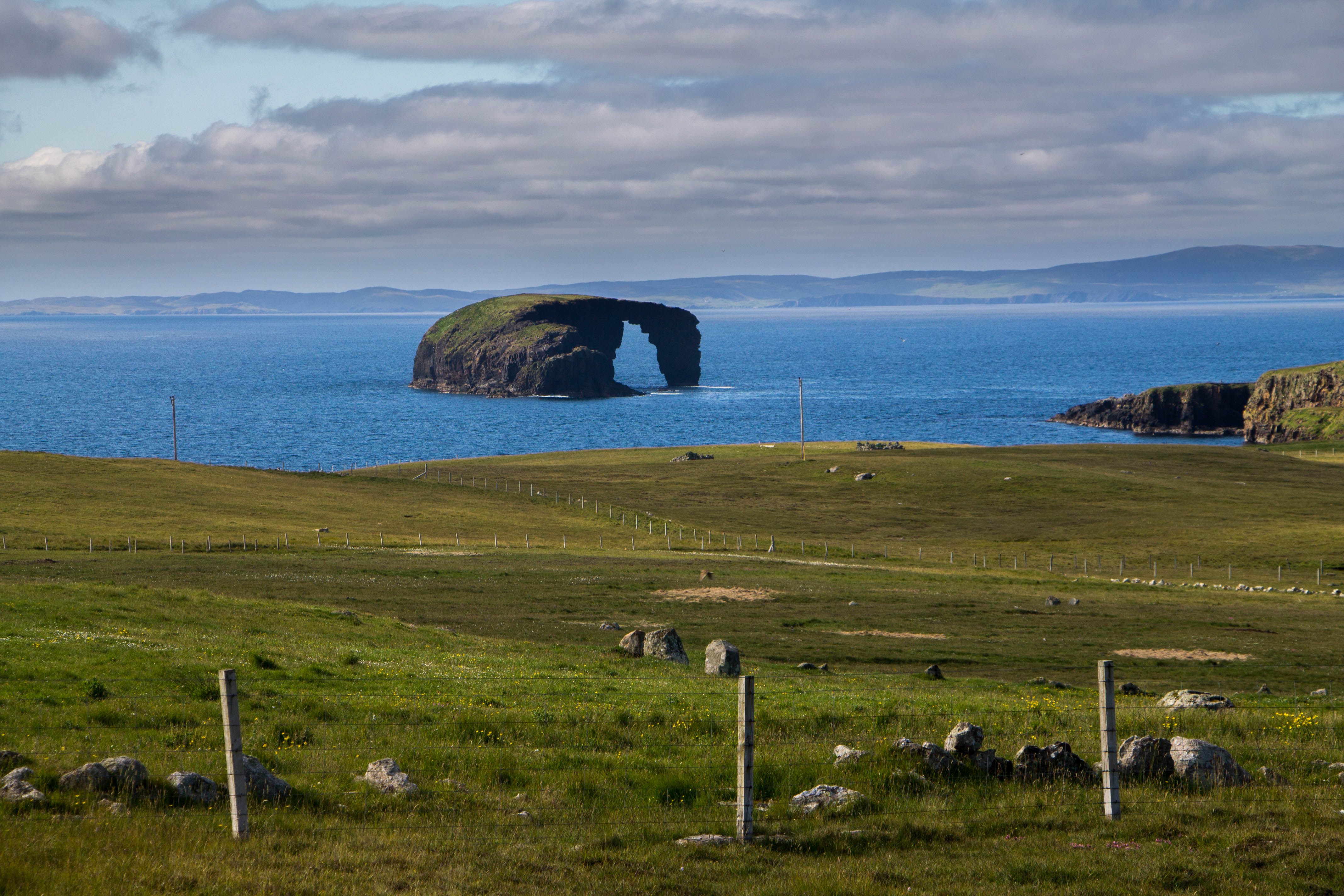 La parte più a Nord di Mainland Shetland si chiama Northmavine e solo per un pelo non è un’isola! Questa grande penisola infatti è collegata al resto di Mainland da uno strettissimo istmo di terra, Mavis Grind, largo solo un centinaio di metri. Northmavine è la parte più selvaggia e aspra di Mainland, con una costa frastagliata, alte scogliere, e un entroterra verdeggiante punteggiato di colline e Lochs. A Northmavine si trova la cima più alta delle Shetland, Ronas Hill, con i suoi 450mt di altezza. Arrivando a Mavis Grind verrete accolti dalla grande scritta in stile Hollywood “Welcome to Northmavine”.