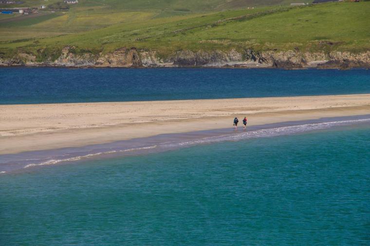 L’escursione segue il perimetro dell’isola e sbagliare strada è davvero impossibile: procedendo in senso orario potrete godere di magnifici panorami in particolare verso Inns Hom e Sweyn Holm, una serie di scogli che spunta dall’acqua. Tornando verso il punto di partenza dopo aver superato The Neapack, il promontorio che si protrae nel mare nella parte settentrionale dell’isola, non perdetevi un’occhiata ai resti della St.Ninian’s Chapel, cappella risalente al 1100 e dedicata al Santo Patrono delle Shetland. Durante tutto il percorso avrete la compagnia delle numerose pecore che vivono sull’isola e, se la visitate in primavera/inizio estate, ci saranno anche gli agnellini!