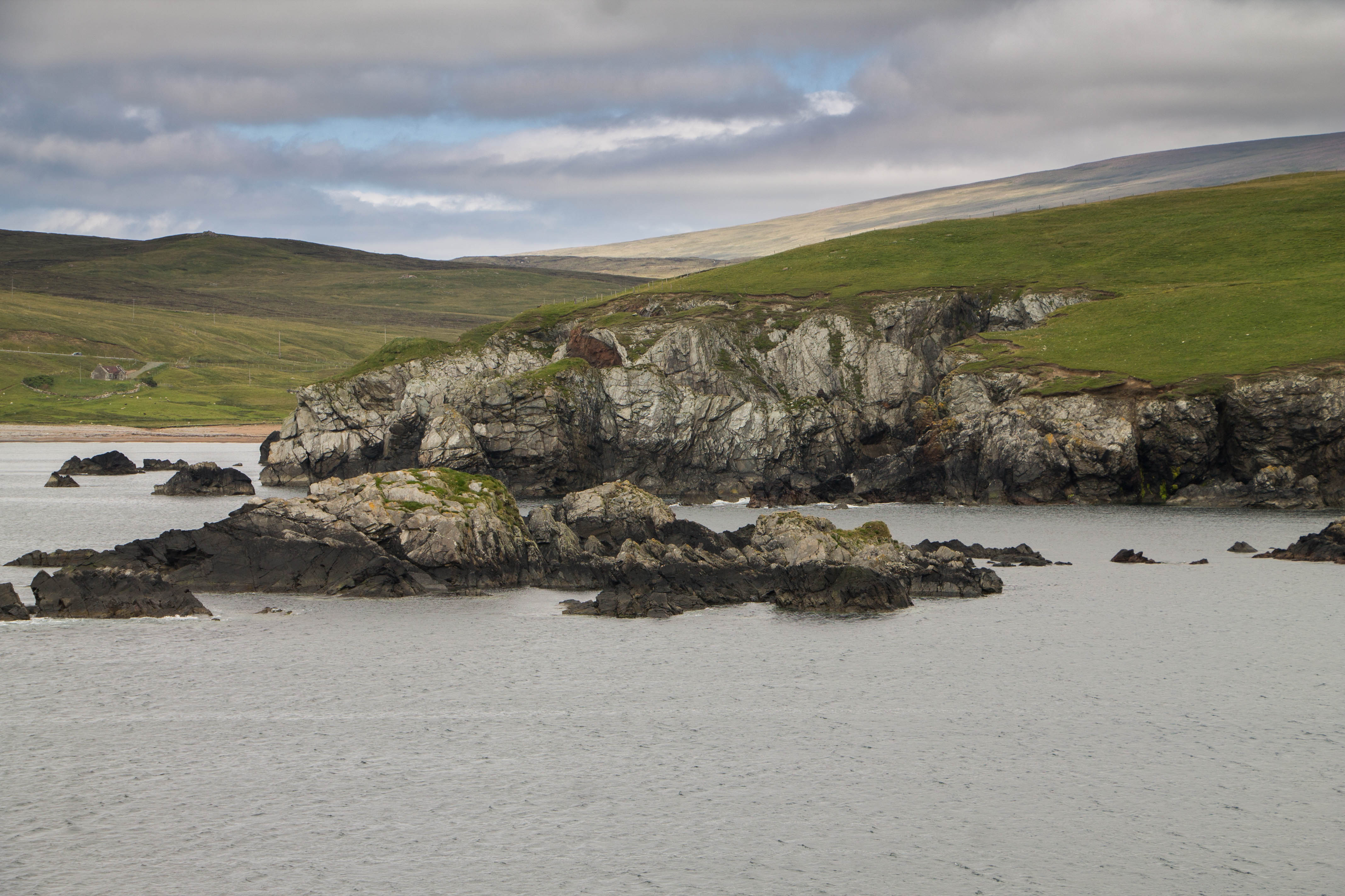 Questo è uno dei trekking che mi è piaciuto di più alle Shetland per gli scorci incredibili verso il mare che incontrerete durante il percorso. Il trekking completo è di 8,5km ma potete accorciarlo andando solo da Silwick a Westerwick e ritorno (mappa nel dettaglio sul link qui sopra – cliccate su view/print our online map nella colonna di destra per vedere la mappa completa). Si parte da in fondo alla strada a Silwick: non c’è un vero e proprio parcheggio ma si lascia l’auto nei pressi di una fattoria, facendo attenzione a non intralciare il traffico agricolo. Puntando verso la piccola spiaggia alla vostra sinistra si oltrepassa un cancello (se non si apre, dovrete scavalcarlo) e si inizia a camminare verso destra, lungo le scogliere, tenendo sempre il mare alla vostra sinistra e le recinzioni alla vostra destra.