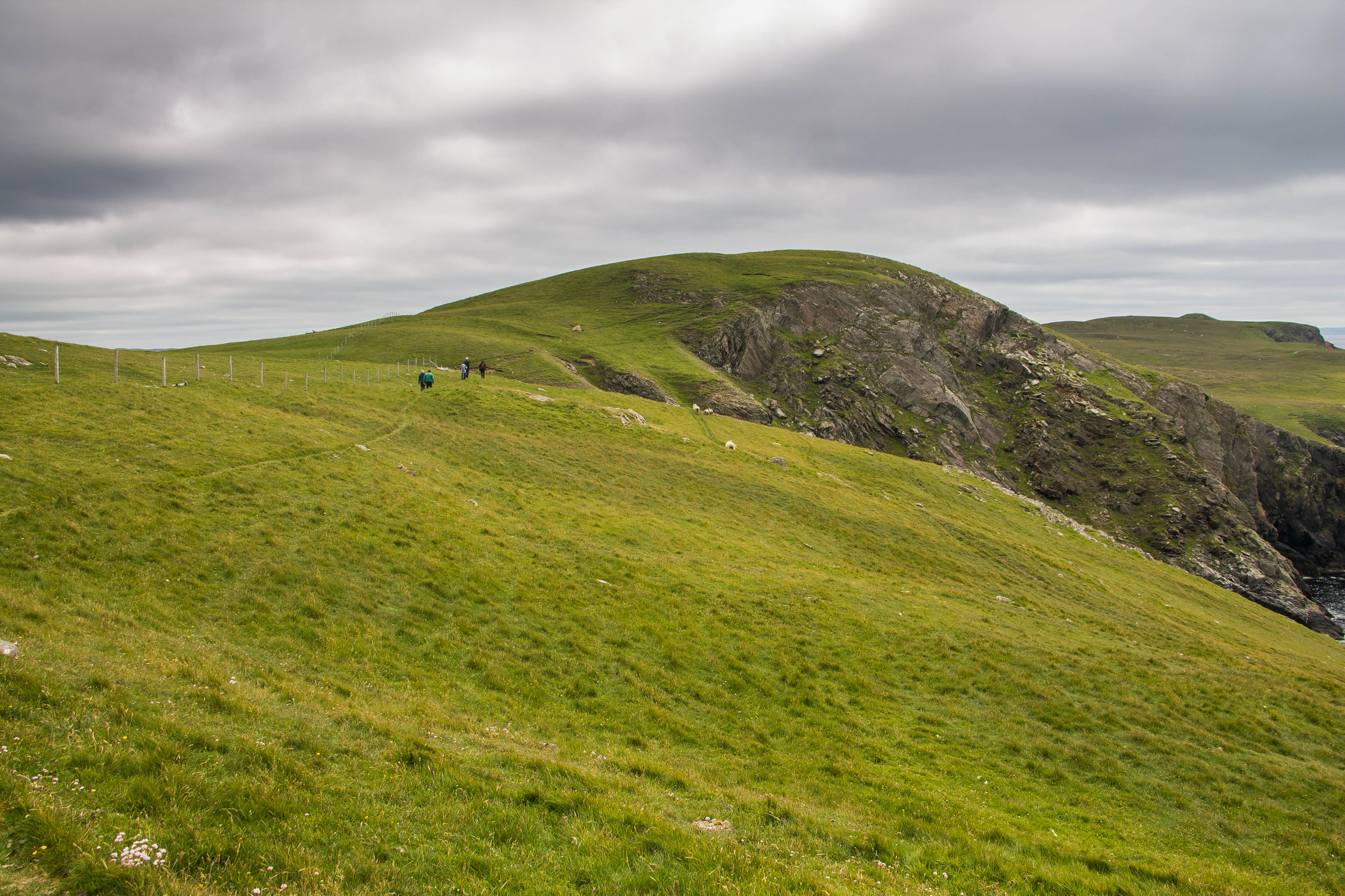 Sarà necessario sorpassare altre recinzioni lungo il cammino, ma niente di particolarmente difficile. La costa qui è caraterizzata da alti faraglioni rocciosi che spuntano a pochi metri dalla riva, mentre l’entroterra è verde e collinare, molto rilassante. Poco prima di raggiungere Westerwick si arriva ad un punto panoramico davvero magnifico, dove mare, erba e cielo sembrano amalgamarsi perfettamente. Da qui sempre seguendo il sentiero si raggiunge la località di Westerwick (solo alcune case a ridosso di una piccola baia) mentre seguendo il sentiero che prosegue invece verso destra si ritorna al punto di partenza, passando per l’entroterra (oppure potete tornare indietro dalla stessa via dell’andata).
