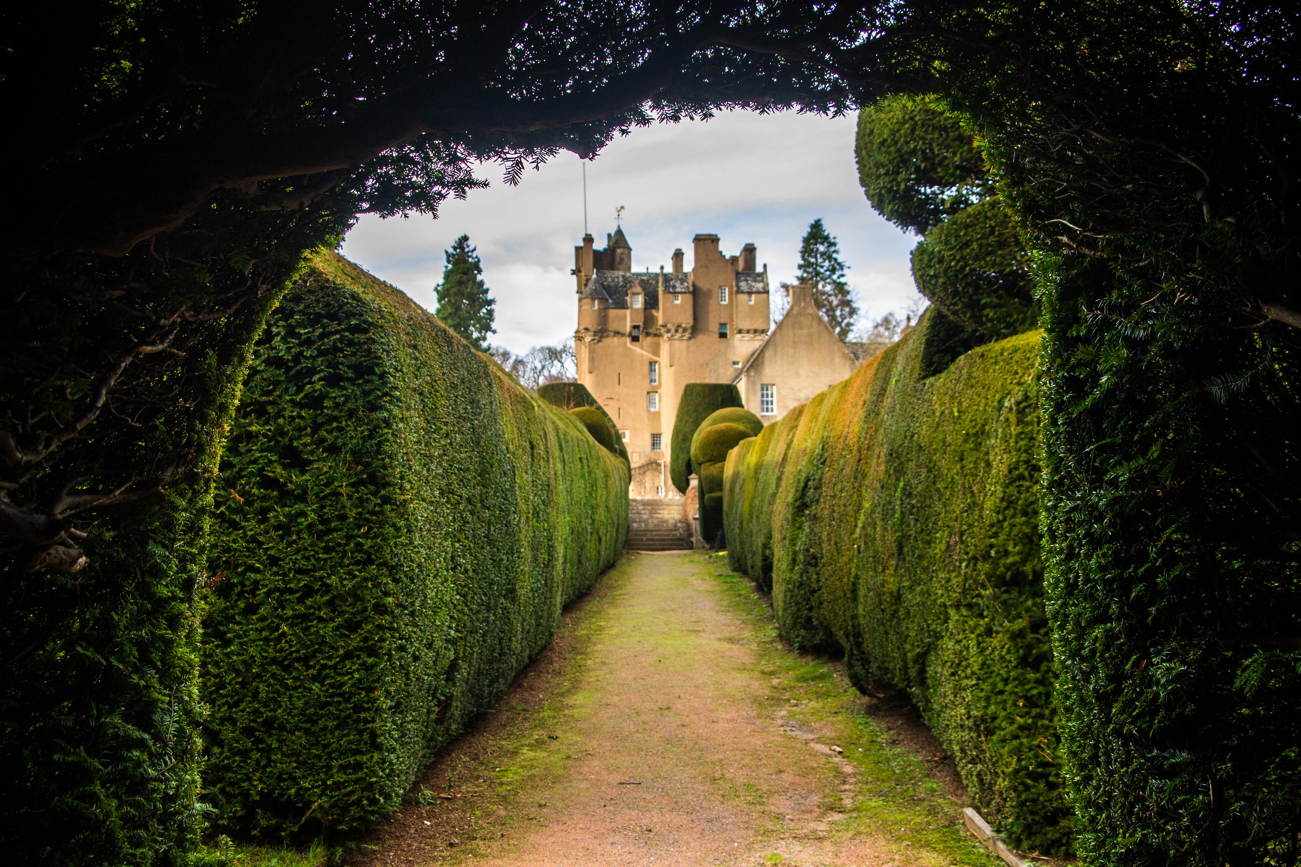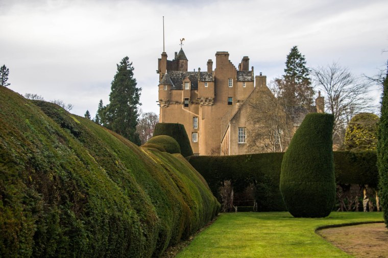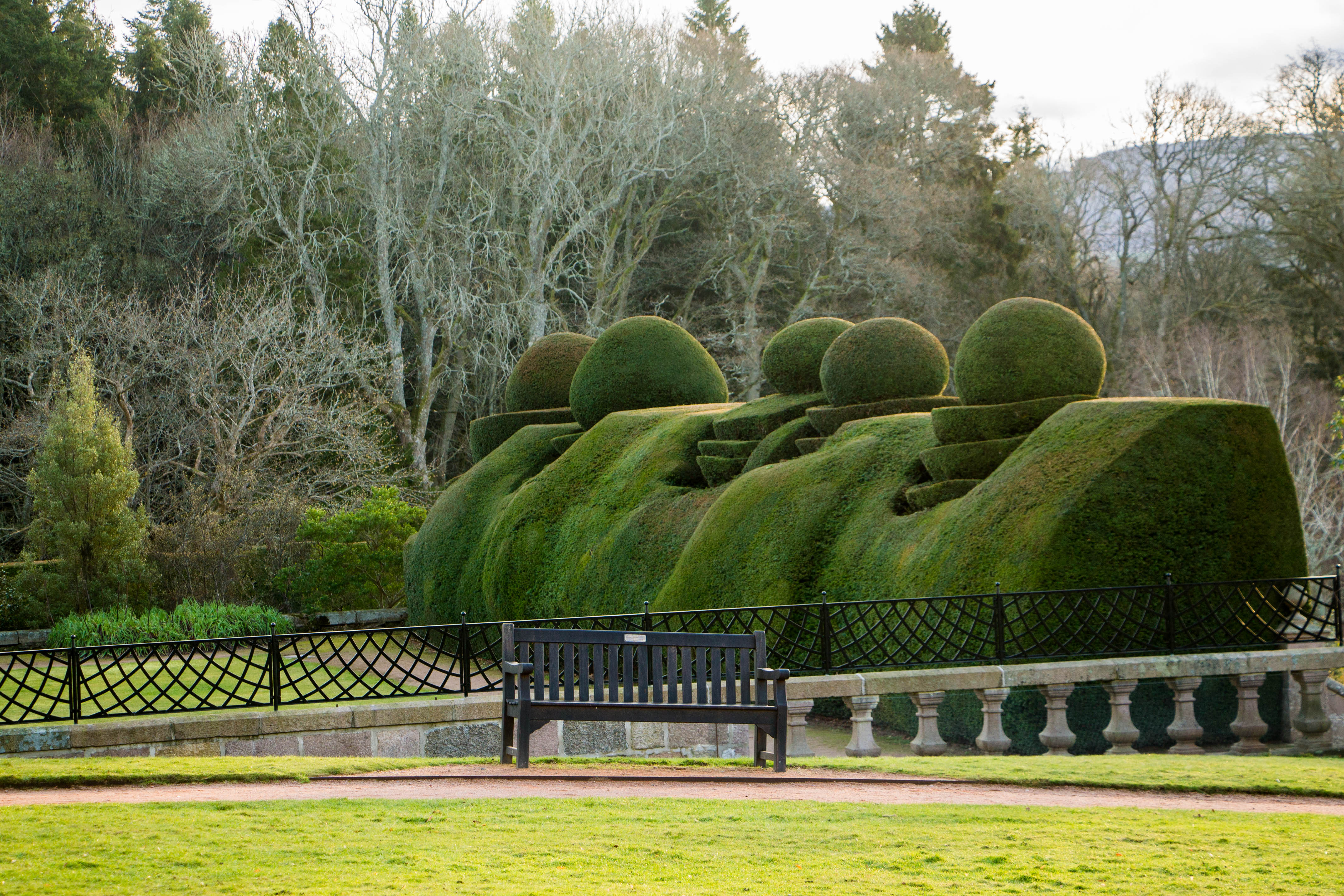 Fiore all’occhiello di Crathes Castle sono i suoi meravigliosi giardini ed in particolare il Walled Garden, chiuso in alte mura di cinta e caratterizzato da siepi quantomeno bizzarre: per dare queste strane forme alle siepi i giardinieri di Crathes impiegano ogni anno 3 mesi, da luglio a settembre, utilizzando addirittura dei carrelli elevatori per raggiungere gli arbusti più alti. Le siepi sono costituite da alberi di tasso, alcuni dei quali piantati addirittura nel 1700. Il tasso è rinomato per essere una pianta incredibilmente longeva ed infatti in Scozia si trova quello che è considerato il tasso più vecchio d’Europa (ve lo racconto qui).