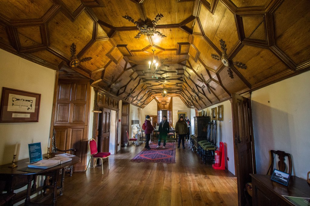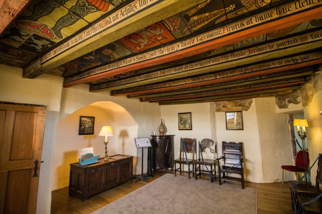 Proseguendo troviamo la Room of the Nine Nobles (stanza dei nove nobili), dove si può ammirare in tutto il suo splendore la magnifica decorazione del soffitto di legno, originale del XVI secolo: vi sono dipinti grandi eroi del passato tra cui Ettore di Troia, Giulio Cesare e Alessandro Magno. Il soffitto, ricoperto di legno ed intonaco, fu riscoperto e restaurarto solo nel XIX secolo. La stanza più grande e decorata del casello è sicuramente la Long Gallery che copre l’intera lunghezza del piano superiore del castello: essa era originariamente utilizzata come palestra nelle giornate di pioggia ma divenne poi una biblioteca fino a tempi piuttosto recenti. E’ caratterizzata da una bellissima pannellatura di quercia sul soffitto, unica nel suo genere rimanente in Scozia a parte quelle del castello di Edimburgo e Stirling.