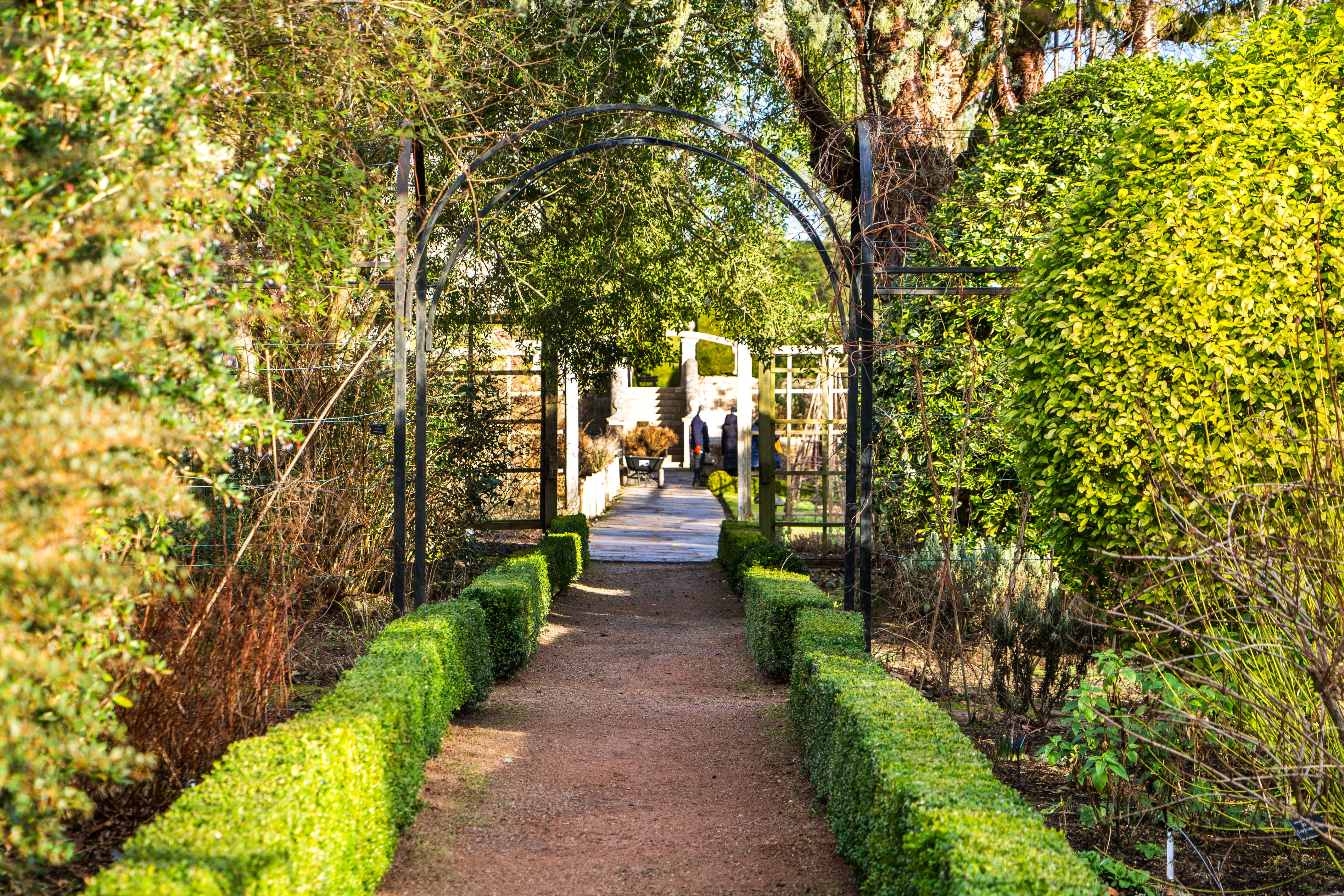 Il Walled Garden per come lo vediamo oggi fu progettato e cosrtuito nel 1900 da Sir James Burnett e sua moglie Sybil, anche se un giardino del genere era presente da secoli, sin dal 1700: un grande spazio rettangolare, a fianco al castello, diviso in otto sezioni individuali decorate con fontane, vasche, bordure, rose e molte specie di piante e arbusti. Se il giardino era così bello in gennaio, non oso immaginare quanti colori e quanti profumi nella stagione estiva!